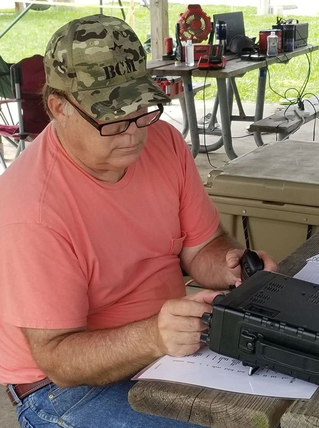 WA5FMY making CW contacts on 20 meter band. Field day 2020.