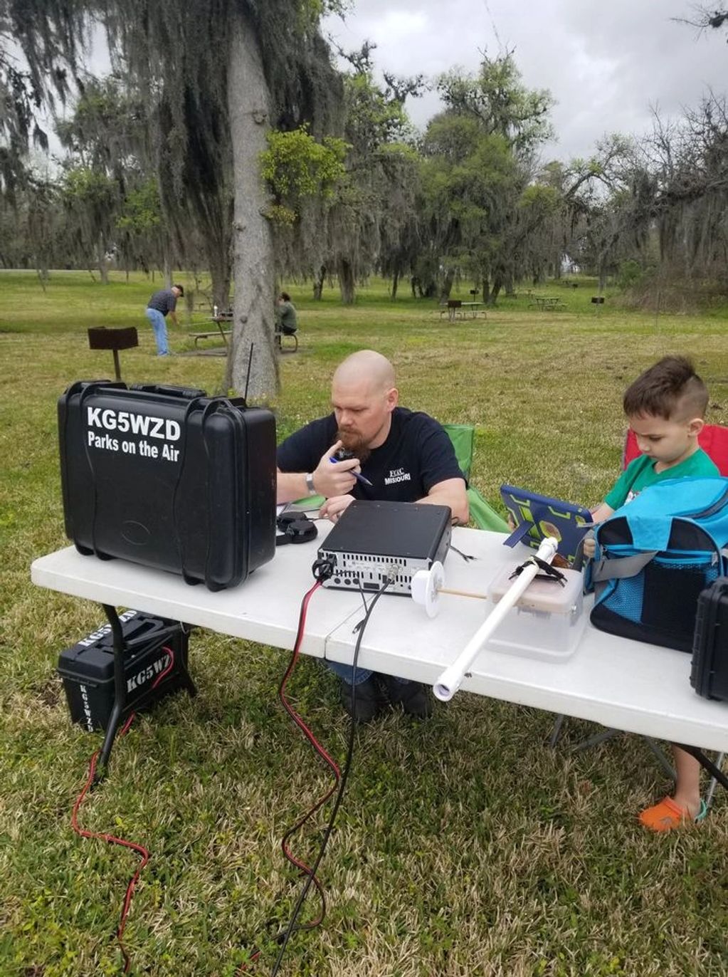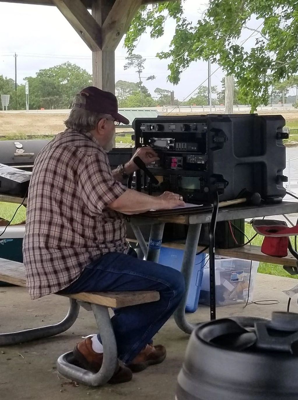 Tom KG5WZD working at parks on the air at SanJacinto Battleground State Park 2020.