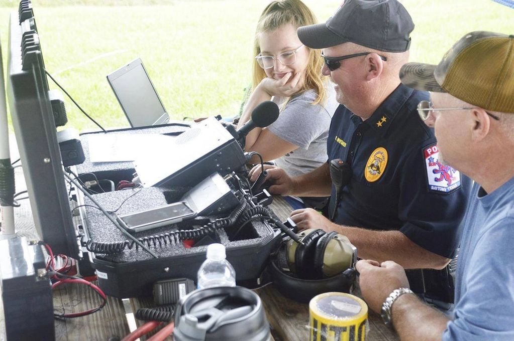 Tiffany KI5IFJ, Baytown Assistant Chief of Police Richard Whitaker, and Lamar taking part in Field Day 2020.