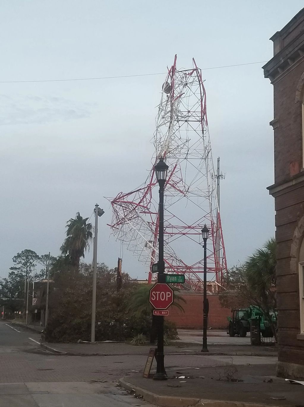 This tower was not up to the hurricane. Its seen is fair share of them but this one finally took it down. Down town Lake Charles, La. Photo by KC5AOI