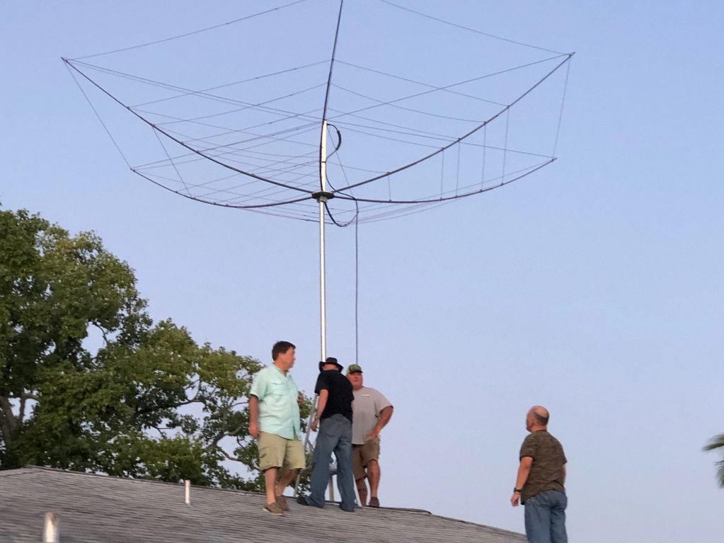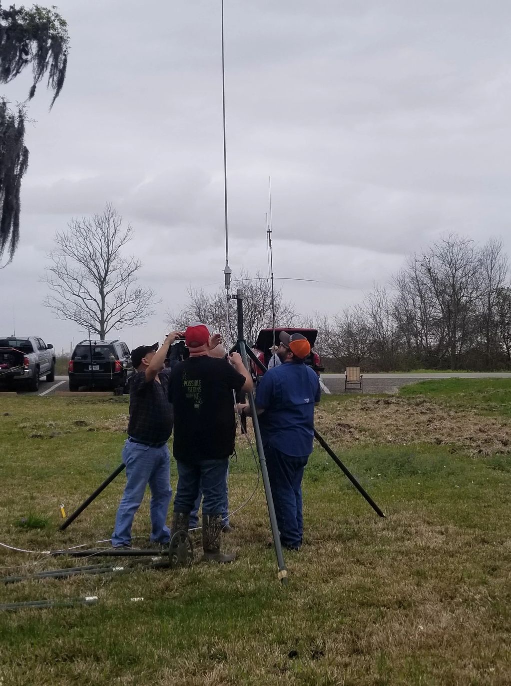 NE5TX, KG5MUC, and KE5GIP setting up a hex beam for Peter