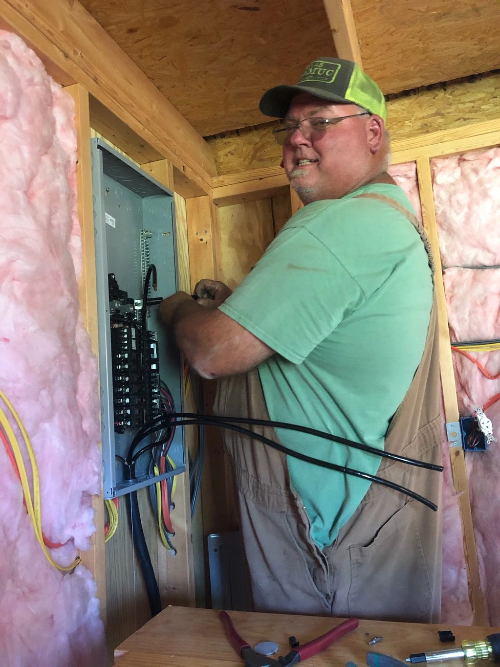 We can do electrical work too! KC5MUC working on NE5TX shack.
